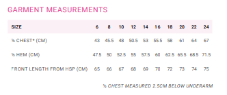 | SIZE | 6 | 8 | 10 | 12 | 14 | 16 | 18 | 20 | 22 | 24 |